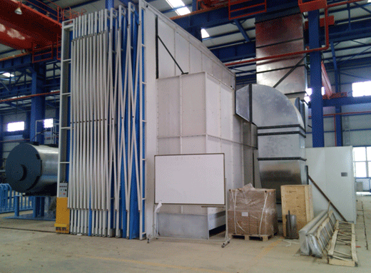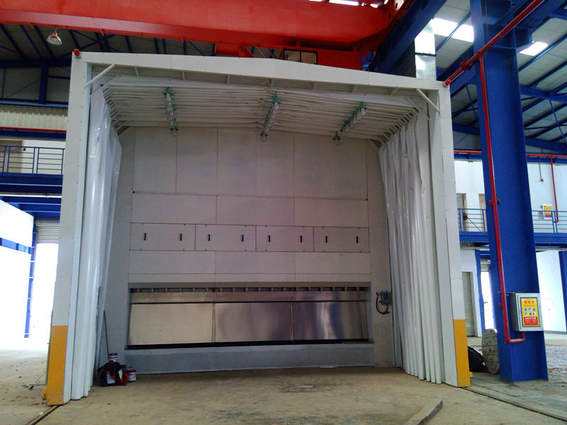 高度6米,寬度7米,無泵水幕伸縮移動噴漆房,設計有有機廢氣處理裝置,排放達標。