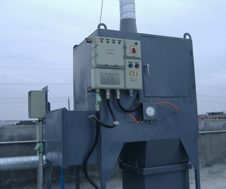在離心風(fēng)機(jī)的負(fù)壓作用下,粉塵從排氣口進(jìn)入后,通過風(fēng)管集中后進(jìn)入粉塵凈化器,在擋風(fēng)板的作用下,氣流向上流動,流速降低,部分大顆粒粉塵由于慣性力的作用被分離出來落入灰斗。細(xì)粉塵進(jìn)入凈化室,當(dāng)通過專用粉塵防靜電聚脂纖維濾芯時,粉塵被阻留在濾筒的外表面,凈化后的氣體經(jīng)濾筒口進(jìn)入上箱體,從風(fēng)機(jī)出風(fēng)口排出。