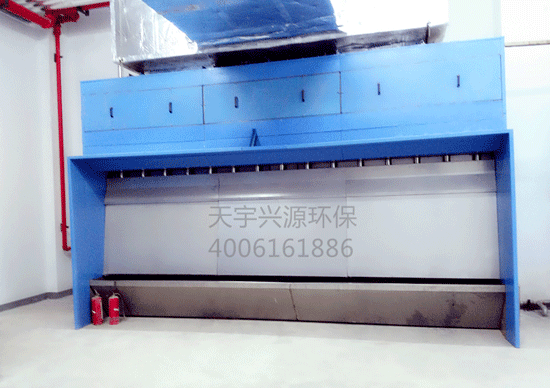 1、利用排風(fēng)負(fù)壓誘導(dǎo)提升水箱中的水形成循環(huán)水幕,省去了水泵循環(huán)供水系統(tǒng)。漆霧的處理效率高。將排風(fēng)系統(tǒng)與提水系統(tǒng)合二為一,形成無泵的水循環(huán)系統(tǒng),即省去了整個水泵循環(huán)供水系統(tǒng),簡化了結(jié)構(gòu),減少了占地面積;如此往復(fù)循環(huán),去除漆霧中的有害成分。循環(huán)水中添加專用的絮凝劑,改變漆霧的粘附狀況,使漆霧漂浮于水面結(jié)成渣塊便于清理。設(shè)備運(yùn)行過程中不斷有新水自動加入水箱,所以水可反復(fù)循環(huán)使用,無污水排放,不會造成環(huán)境二次污染。設(shè)備結(jié)構(gòu)設(shè)計合理,運(yùn)行穩(wěn)定。